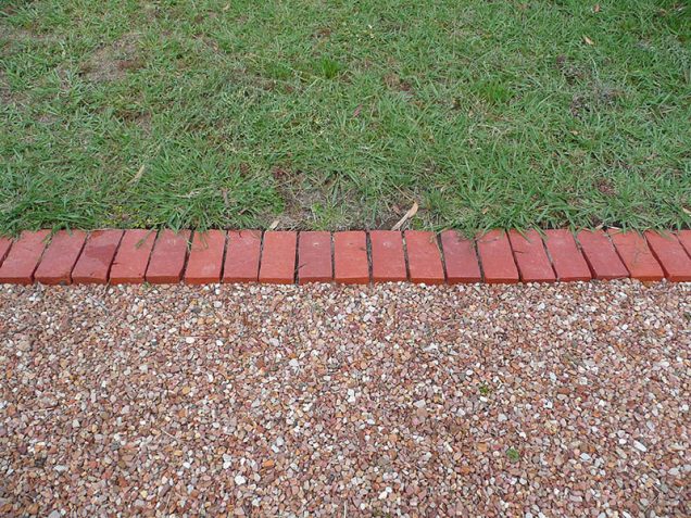Si quieres agregar definición entre las áreas de jardín con poco presupuesto, los ladrillos pueden ayudarte. Estos se consiguen a precios muy bajos y lo único que tienes que hacer es excavar una zanja del tamaño de cada ladrillo alrededor del césped y colocar dentro una capa de arena y después los ladrillos uno al lado del otro, manteniéndolos nivelados.