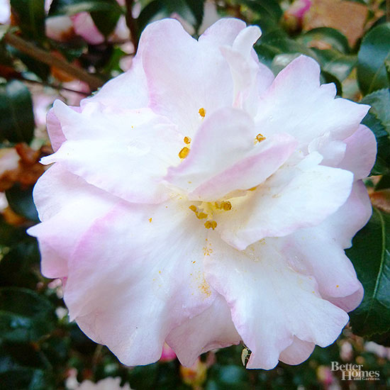 La camelia es la reina indiscutible del jardín de invierno. Florece desde el otoño hasta finales de la primavera y en una enorme variedad de colores. Su follaje es de un intenso color verde brillante y ramifica densamente. Prefieren el suelo ligeramente arenoso y ácido y son de crecimiento lento. Alcanza una altura de 3,5 a 6 metros.