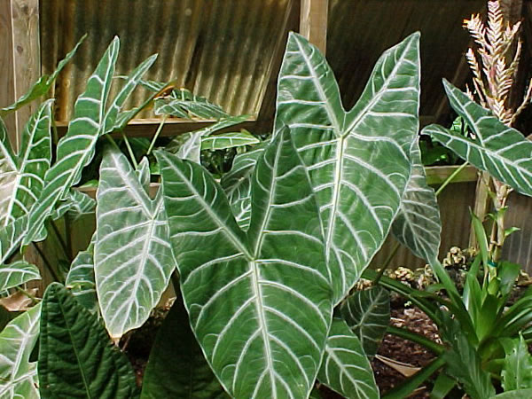 La Alocasia amazonica, conocida como orejas de elefante, el follaje de esta planta es brillante, de color verde oscuro y verde plateado en las venas. Las flores son bastante  insignificantes, pero el follaje compensa por ello. Al igual que la planta cebra también necesita mucha humedad. La nebulización regular de las hojas tiene un propósito doble,  añadir humedad y mantener la planta libre de los ataques de la araña roja. Sin embargo se ha de plantar en una maceta con agujeros de drenaje para evitar la pudrición de la raíz.
