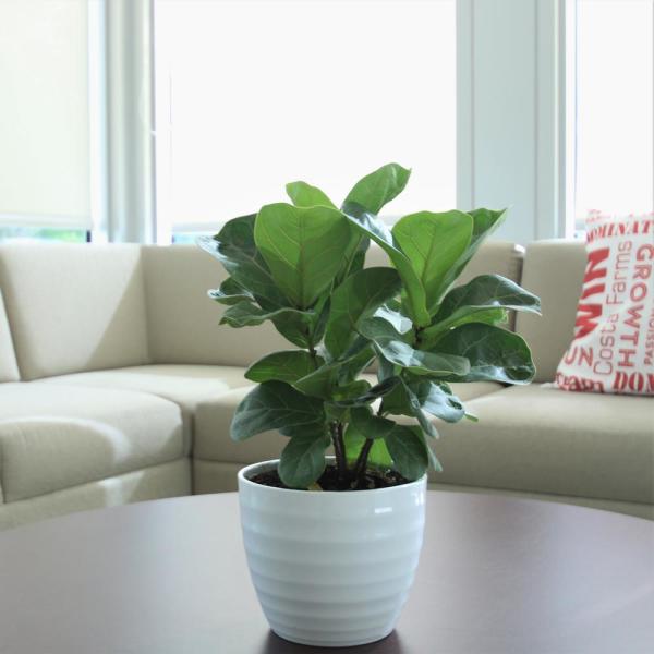 Esta hermosa planta produce un follaje de color verde oscuro, similar a su prima más grande, pero con la mitad del tamaño de la planta original. Las hojas de esta especie de Ficus lyrata miniatura se encuentran apretadas en cada tallo y crean una masa sólida de color.